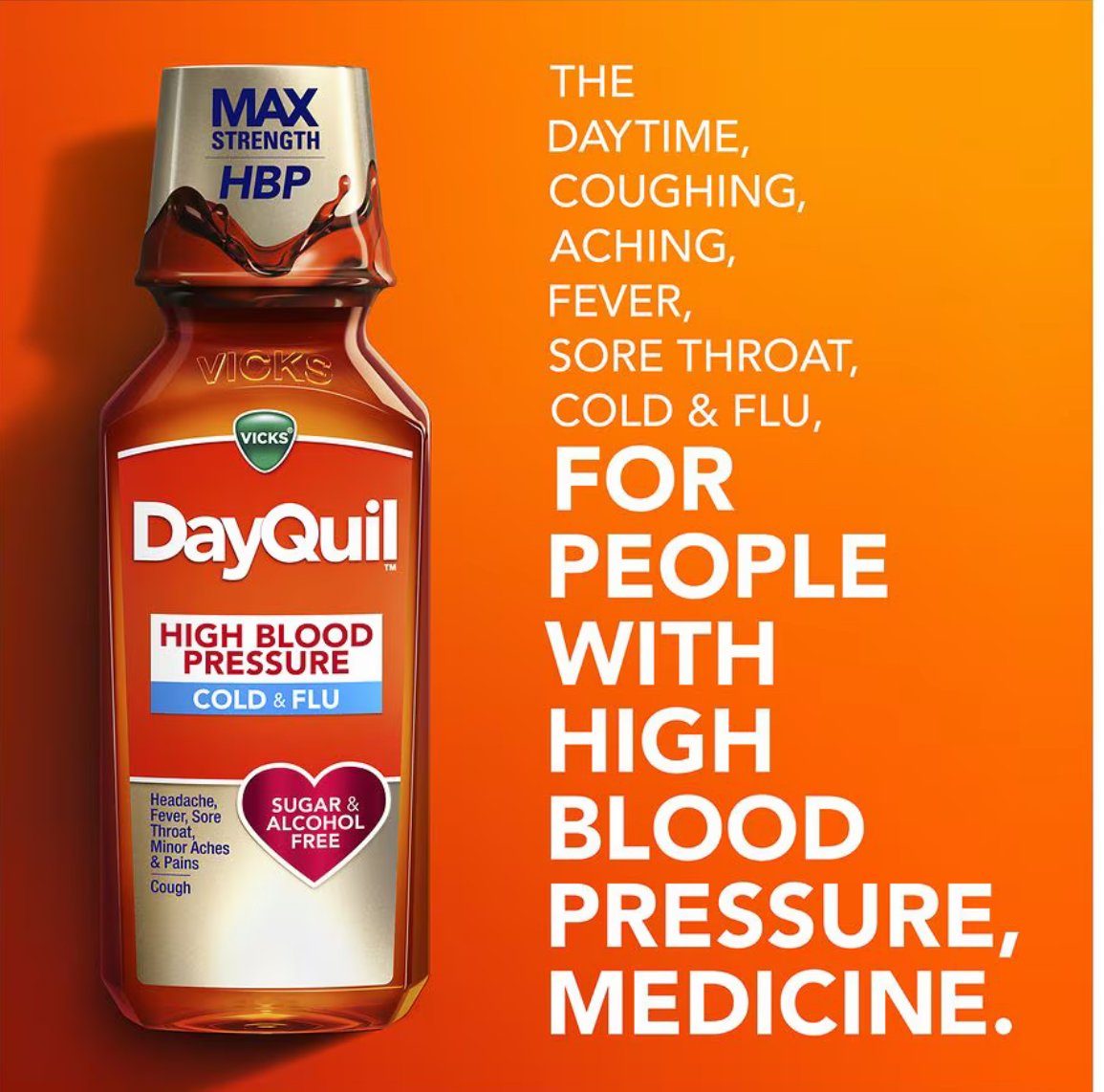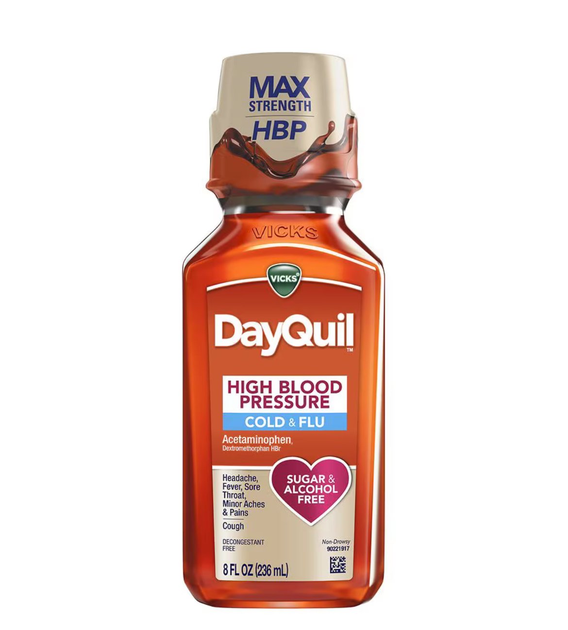DAYQUIL HIGH BOOD PRESSURE COLD & FLU RELIEF LIQUID OVER -THE-COUNTER MEDICINE NO FLAVOR 8.0 FL OZ