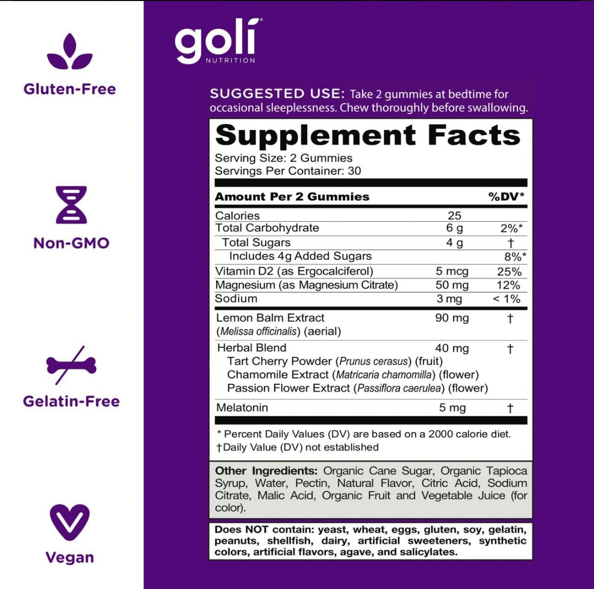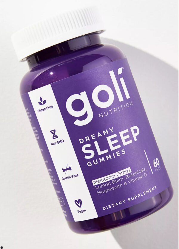 goli dreamy sleep gummy – 60 count – melatonin, vitamin D, magnesium, and lemon balm extract – gelatin- free, gluten-free, vegan & non – gmo